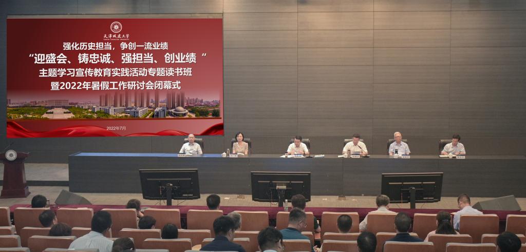 7月13日下午,学校“迎盛会、铸忠诚、强担当、创业绩”主题学习宣传教育实践活动工作专题读书班暨2022年暑期工作研讨会圆满落幕。校领导史庆伟、白海力、王罡、崔雅利、王中良、陈志华及全体处级干部参加,会议由校党委副书记、校长白海力主持。
