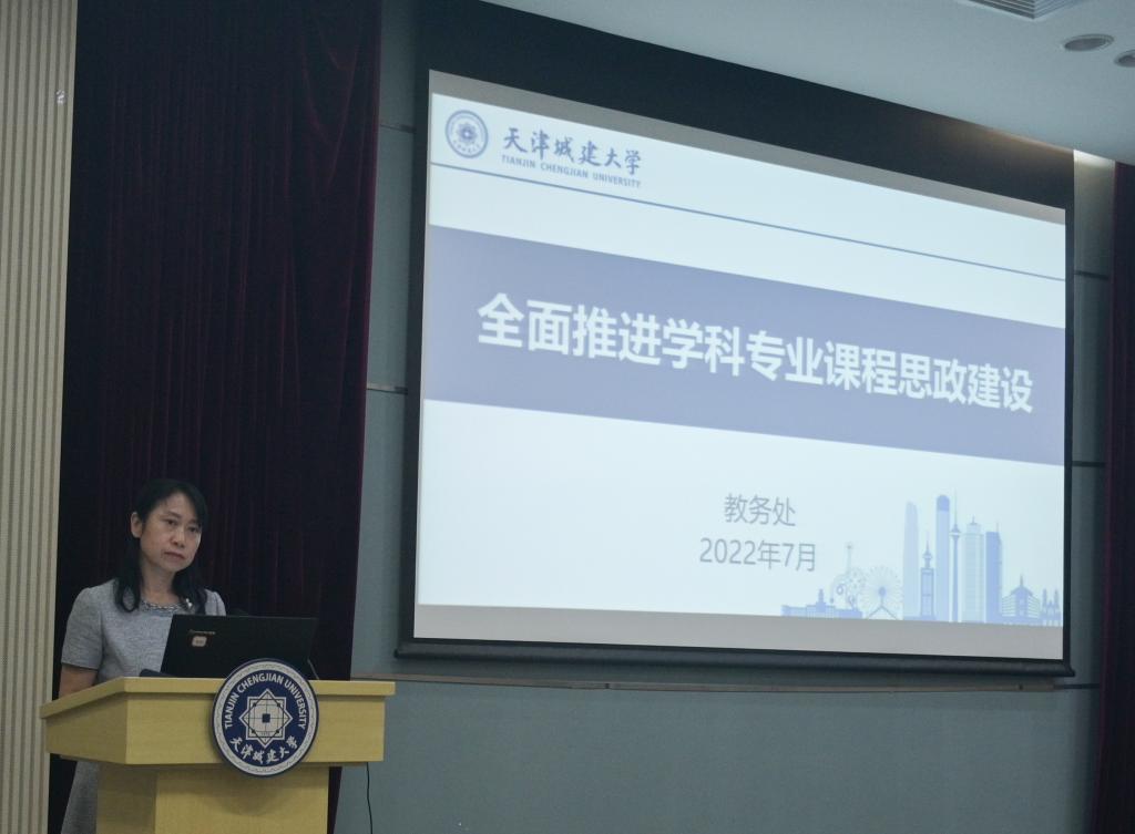 教务处处长赵国敏围绕“全面推进学科专业课程思政建设”详细汇报了学校近年来在课程思政建设发展六个阶段所取得成果,即建设“一间”课程思政资源库、提升教师对课程思政认知与教学能力;建设“一座”独具匠心的思政教育实践教育基地,彰显天城大优势学科专业特色;统一开设了“一门”融入“三爱”、美育、劳育的认知实践,为新生紧好未来职业规划的第一粒“扣子”;建设了“一系列”思政课程与课程思政工作坊,各课程思政教研分中心专业教师与思政课教师结对子,实现思政课程与课程思政同向同行。