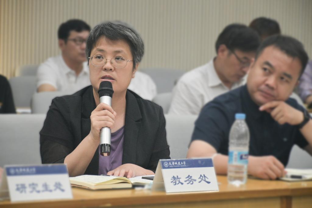 党委教工部部长高阳以“完善思想政治工作体系建设——队伍建设研究”为题,围绕高素质教师队伍建设、高素质思想政治工作和党务工作队伍建设、马克思主义学者和青年马克思主义者培养等方面介绍了近年来学校教师队伍建设情况以及工作开展过程中面临的问题。并就“如何充分发挥高层次人才师德师风示范带头作用”“发挥师德评价结果在绩效考核、职称评聘、评先评优等方面的正向引领作用”“进一步完善学校教师思想政治和师德师风建设体系”等和与会人员开展交流研讨。