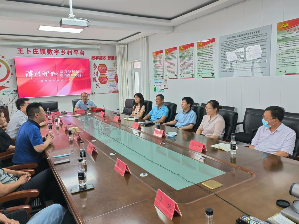 自我市新一轮驻村帮扶工作开展以来,在校党委的坚强领导下,我校驻龙潭庄村、八间村工作队按照天津市扶持经济薄弱村发展实施方案要求,聚焦经济薄弱村产业发展重点难点,在前期广泛深入调研的基础上,围绕村庄农产品提质升级,积极联系社会资源,寻求广泛合作。7月6日,由我校驻村工作队牵头,在宝坻区王卜庄镇政府举办了“津门礼物”助力乡村振兴促消费系列项目的战略合作签约仪式。活动现场宝坻区王卜庄镇政府、文旅智营、兴业银行天津分行三方正式签署战略合作协议。项目生态合作伙伴噪点视觉、朝美津睿科技等单位代表共同出席签约仪式。