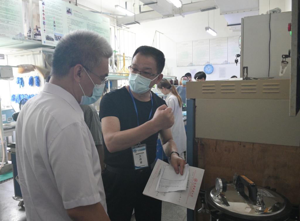 6月21日上午,教委专家组一行对我校实验室进行了全面检查。副校长崔雅利、保卫处、科技处、研究生处、国资处等部门负责人陪同检查。