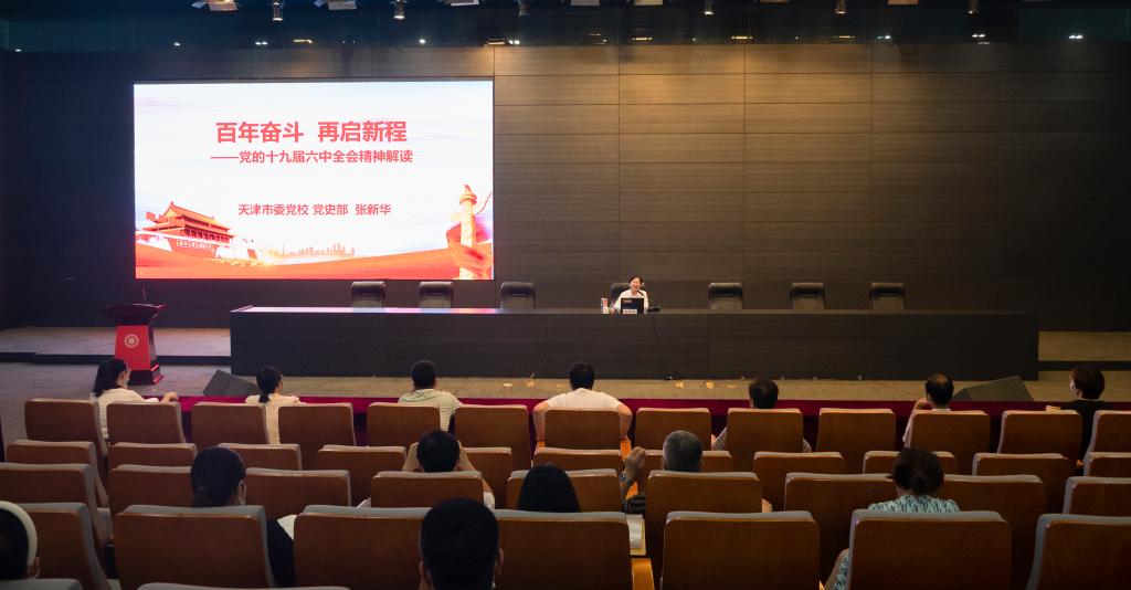 为深入学习贯彻党的十九届六中全会精神,近日,中共天津市委党校中共党史教研部主任张新华教授做客我校“鸣飞大讲堂”,围绕《奋斗百年 再启新程——党的十九届六中全会精神解读》作专题报告。校党委副书记王罡主持报告会。