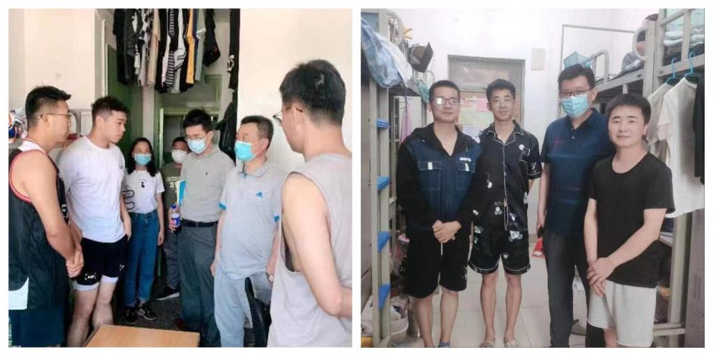 国际工程学院领导班子带领辅导员深入学生宿舍,与学生面对面交流了解学生思想动态和实际困难,查看在校学生的网课学习情况。针对学生的诉求和困难,一对一提出解决办法,帮助协调解决学生关切的问题,叮嘱学生返乡途中注意安全,做好个人的防护,假期要持续保持良好生活习惯,遇到困难及时联系学院老师。