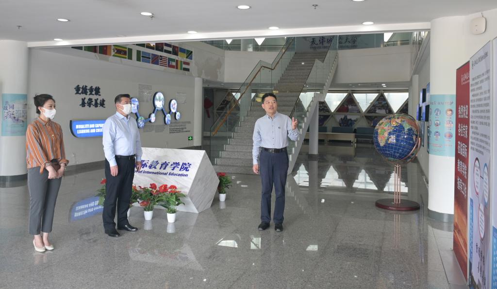 白海力在国际教育学院领导班子的陪同下参观了古琴弦歌基地、红色教育阵地、国际众创空间等,与师生亲切交谈。期间,国际教育学院院长张海围绕中外合作办学、来华留学教育、国际交流合作等介绍了我校国际教育发展情况,学院直属党支部书记边菁华讲解了“奋斗百年路 启航新征程—中国共产党全国代表大会图片展”,介绍了学院在党史学习教育方面“走新”又“走心”的特色做法。