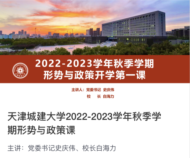 日前,校党委书记史庆伟、校长白海力为2022级新生分别作题为《踔厉奋发启新程 青春筑梦向未来》和《忠诚显担当 青春长报国》的形势与政策开学第一课,课程通过超星平台播放,我校2022级新生通过线上线下主题班会、个人自学等多种方式开展学习。