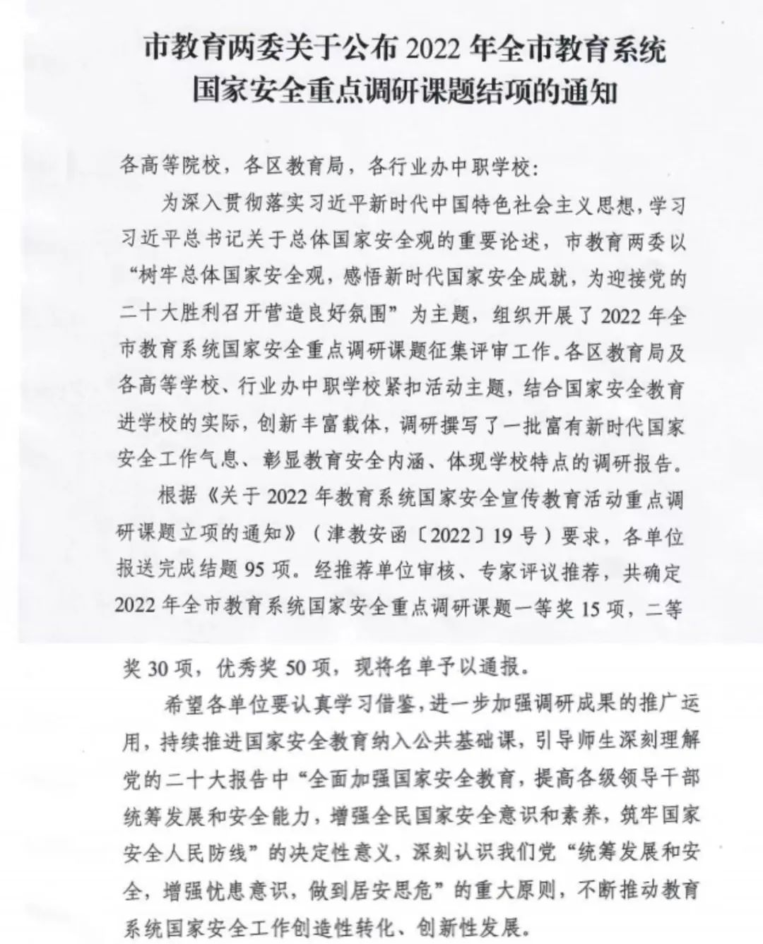近日,市教育两委印发了2022年全市教育系统国家安全重点调研课题结项的通知,我校马克思主义学院教师何慧琳的课题《大数据背景下高校意识形态安全现状调研》荣获二等奖。