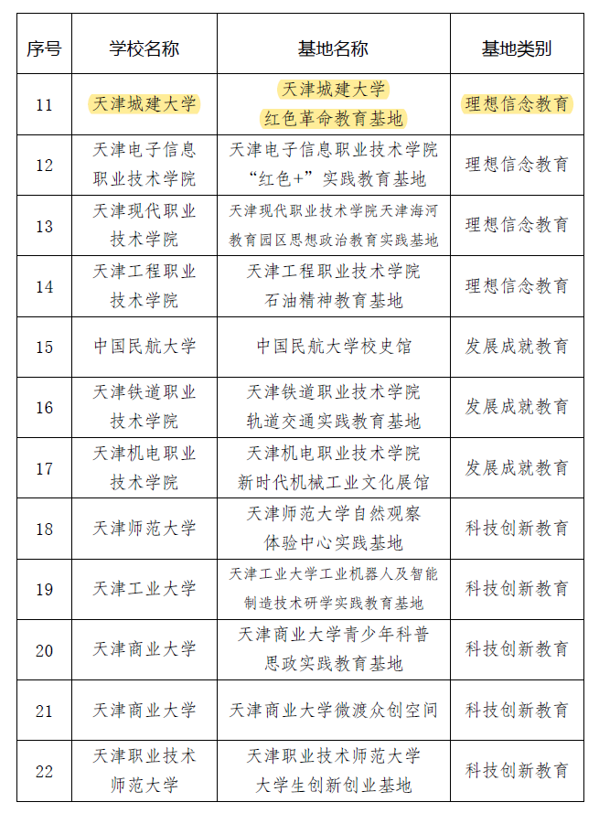 近日,共青团天津市委员会、天津市学生联合会公布了首批天津市高校红色研学实践教育基地名单,我校理想信念教育、科技创新教育、优秀传统文化教育、廉政文化教育4个类别教育基地成功获批。