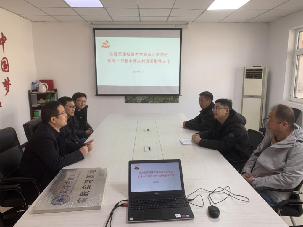 驻村第一书记程相博代表村委介绍了中河头村的村史和发展情况。中河头村是天津籍首位中共党员安幸生烈士的故乡,也是天津市第一个农村党支部的诞生地,具有深厚的红色基因,先后获得中组部红色美丽村庄试点村、天津市委组织部现场教学点、天津市爱国主义教育基地、天津市乡村振兴示范创建村、天津市乡村治理示范村、天津市新时代文明实践基地、北辰区“红旗党组织”等荣誉。该村“红色引领绿色发展”的经验做法被《人民日报》《光明日报》、新华社、《天津日报》、人民网、小康网等多家媒体报道。程相博对城市艺术学院师生团队长期以来对中河头村发展的关注与帮助表示感谢,期待今后与学院开展更全面、更深入的产学研合作。