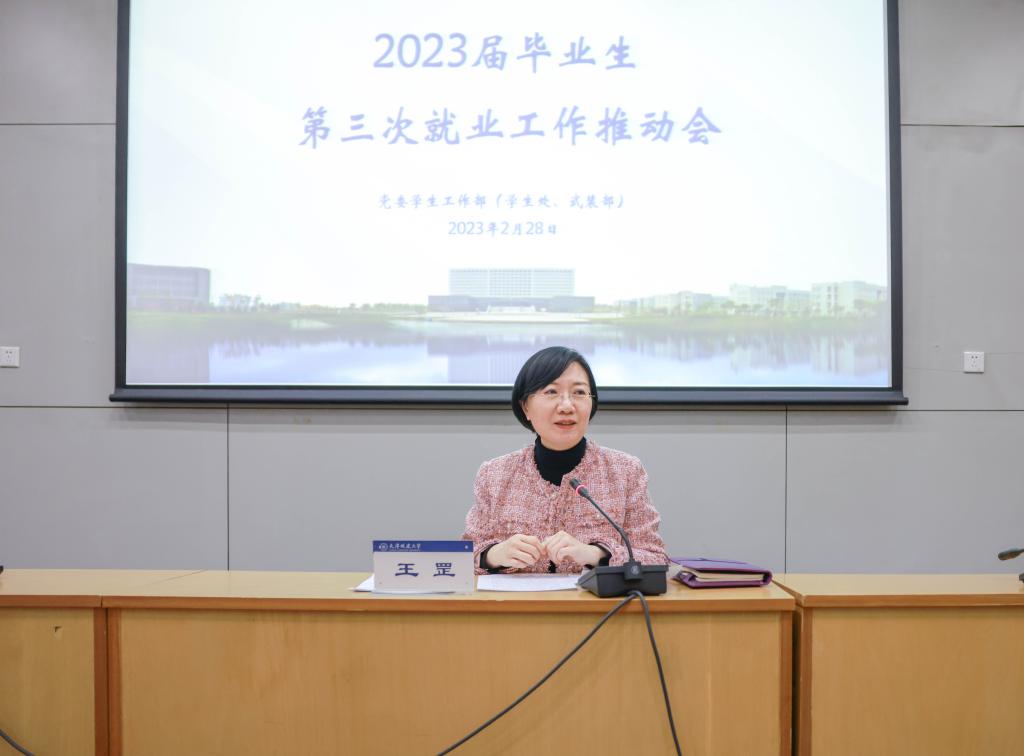 视频会后,学校召开了2023届毕业生第三次就业工作推动会。王罡结合本次视频会相关要求,对下一步学校就业工作进行部署:一是要认真落实上级部署要求,强化组织领导压实责任。要深入学习贯彻党的二十大精神,充分认清严峻就业形势,落实就业工作“一把手”工程,形成全员促就业工作格局,进一步细化就业工作方案,严守就业工作纪律。二是要深入推进春季促就业专项行动,发挥校园招聘主渠道作用。要持续做好访企拓岗工作,充分调动教学、科研、校友等多方面资源,深化多领域校企合作,大力举办各类专而优的专场招聘活动。三是要精准开展就业帮扶,提升就业服务质量。要做好重点群体的就业帮扶工作,实行“一人一档”、“一人一策”动态管理,做实、做精、做细就业工作,打通就业服务最后一公里。四是要全面加强就业指导,持续深化就业观教育。要进一步提升就业指导质量和实效,切实维护毕业生就业权益,充分挖掘就业典型人物,发挥示范引领作用,引导毕业生到祖国需要的地方建功立业,全力促进我校毕业生更加充分和更高质量就业。