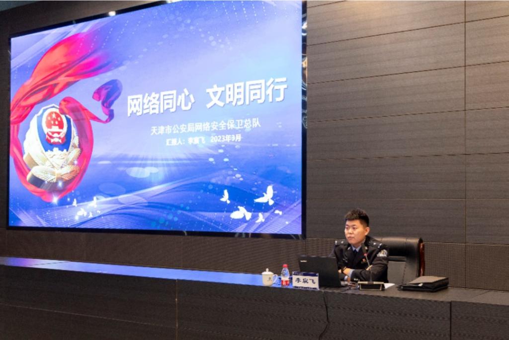 3月29日下午,天津市公安局网络安全保卫总队三支队支队长任旭,民警郭润、李宸飞受邀来校开展网络安全宣讲,为师生做题为“网络同心 文明同行”的专题报告。网络安全和信息化办公室相关负责同志及学校师生代表300余人聆听了报告。