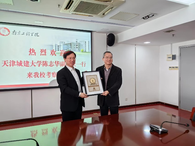 在南京工程学院,学校党委常委、副校长郑锋以及党办校办、教务处、教学质量管理与评估处、机械工程学院、建筑工程学院、国际教育学院、计算机工程学院相关负责人参加交流座谈。郑锋介绍了南京工程学院的办学历程、特色专业和发展成效,以及作为第一所江苏省本科教育教学审核评估试点学校,在审核评估工作组织和实施、人才培养改革及现代产业学院运行机制等方面的创新举措。陈志华表示两所院校在培养创新型应用人才方面有共通之处,南京工程学院在对接国家工程教育认证标准、强化OBE(Outcome Based Education,成果导向)理念、实施项目式教学、强化课程及专业建设所做出的改革与创新措施值得深入借鉴与学习。此外,考察团一行针对南京工程学院智能制造产业研究院、腾讯云人工智能学院数字技术工程研究中心等省级产业学院建设情况进行了参观交流。