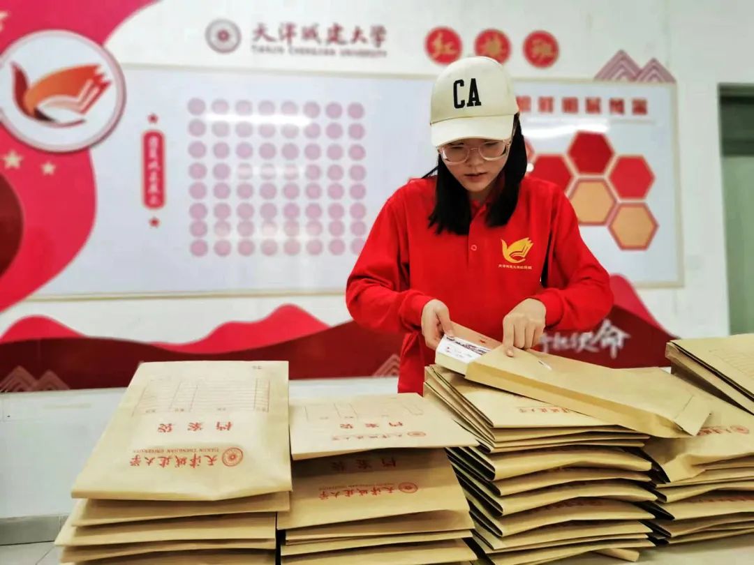 “红旗班”学员、材料科学与工程学院李青青同学主动承担“图书盲盒”制作志愿服务,提前将书籍进行编号,再密封装袋。