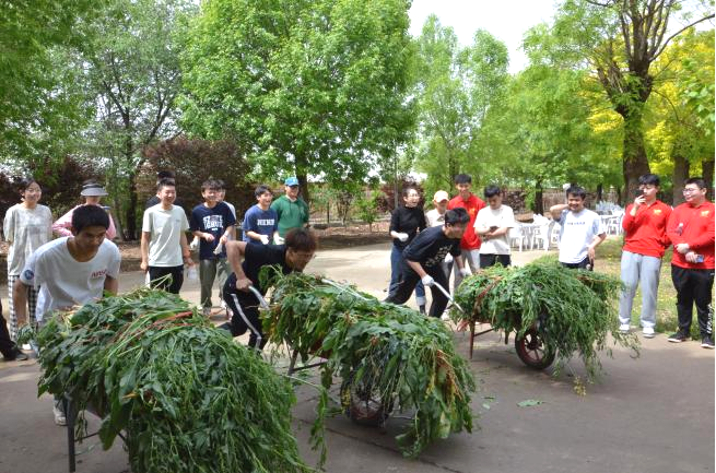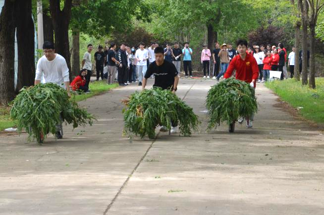 在运输野草环节,同学们又举办了一场别开生面的农场运动会。大家将拔下来的野草放入独轮车中,以小组为单位进行PK,开展独轮车比赛,增强了劳动实践的趣味性,把劳动教育课真正搬到了田间地头。