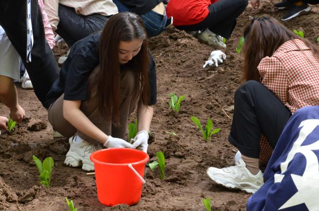 随后,大家划分为10个小组,分工协作,挥楸铲土,翻耕土壤,将土块捣碎,整理出一块一块的菜畦,各个环节衔接有序。