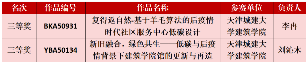 近日,中国建设教育协会中国城市科学研究会绿色建筑与节能专业委员会公布“第五届全国高等院校绿色建筑技能大赛”获奖作品名单,经过层层选拔与激烈角逐,我校建筑学院两组作品荣获三等奖。