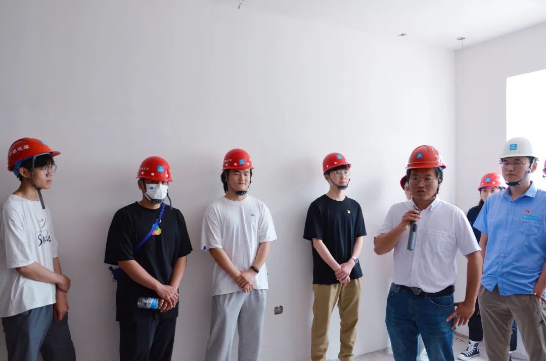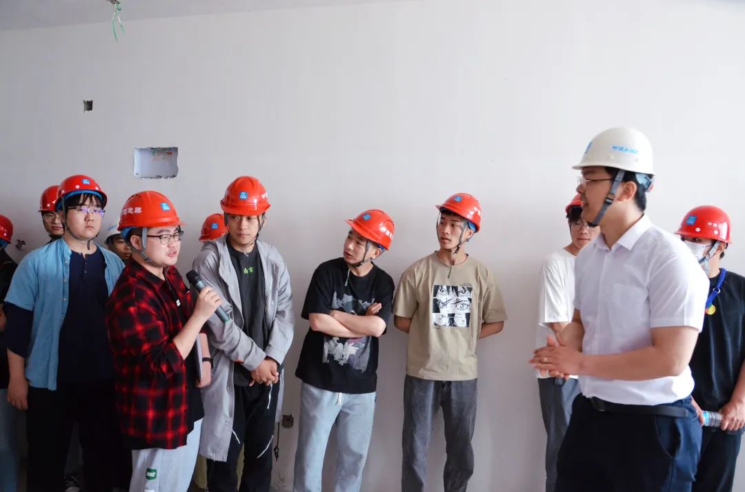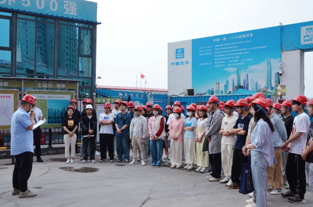 中建一局建设发展公司华北分公司综合管理部经理李龙对威客电竞师生的到来表示欢迎,介绍了中建一局成立70周年来,公司始终秉承以高质量党建引领保障高质量发展,希望同学们积极向党组织靠拢,牢记初心使命,深耕专业技能,勇担时代责任。中建一局建设发展公司天津“金融街滨海融御”项目工程部经理牛洋、安全部经理张刚为在场师生详细介绍了该项目的整体概况、设计理念、结构特征以及工程安全注意事项等情况,并带领大家参观了项目的施工现场。