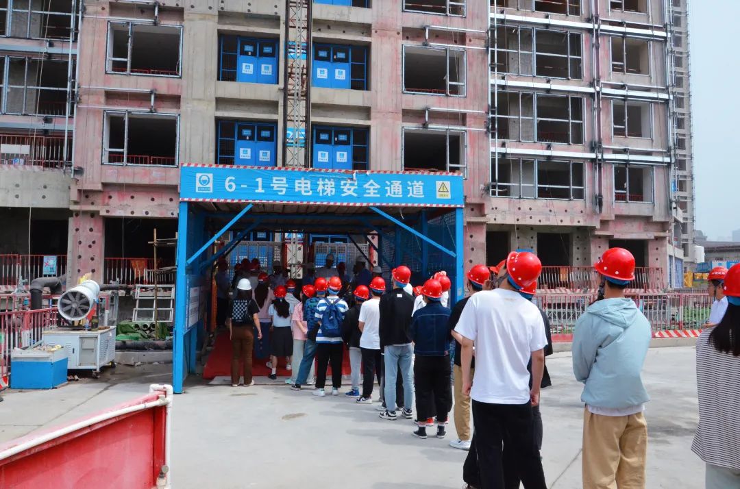 随后,大家乘坐直梯进入项目内部,深入工地现场,技术部经理李海龙对本项目进行现场技术分析,为同学们讲解了当前所在工程的地质结构特点、房屋建造过程、施工质量控制以及专业知识如何在建设项目中发挥作用等。在场的同学们就项目建设、知识实践运用等方面积极提问,李龙和项目部副书记宋博进行了耐心解答,与同学们交流互动,使大家对理论知识与工程实践的结合有了新思考、新认识。