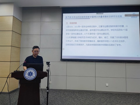 会上,我校2023年通过验收的9项天津市级教学改革研究项目负责人分享了教学改革经验,分别从项目选题、研究内容、工作方案、标志性成果及推广应用情况等方面进行汇报,并对市级教改项目的申报与实施提出宝贵建议。