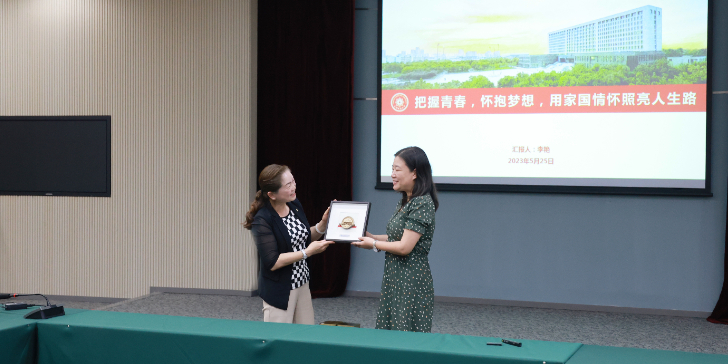 活动最后,郑伟向李艳赠送了学生制作的纪念品。