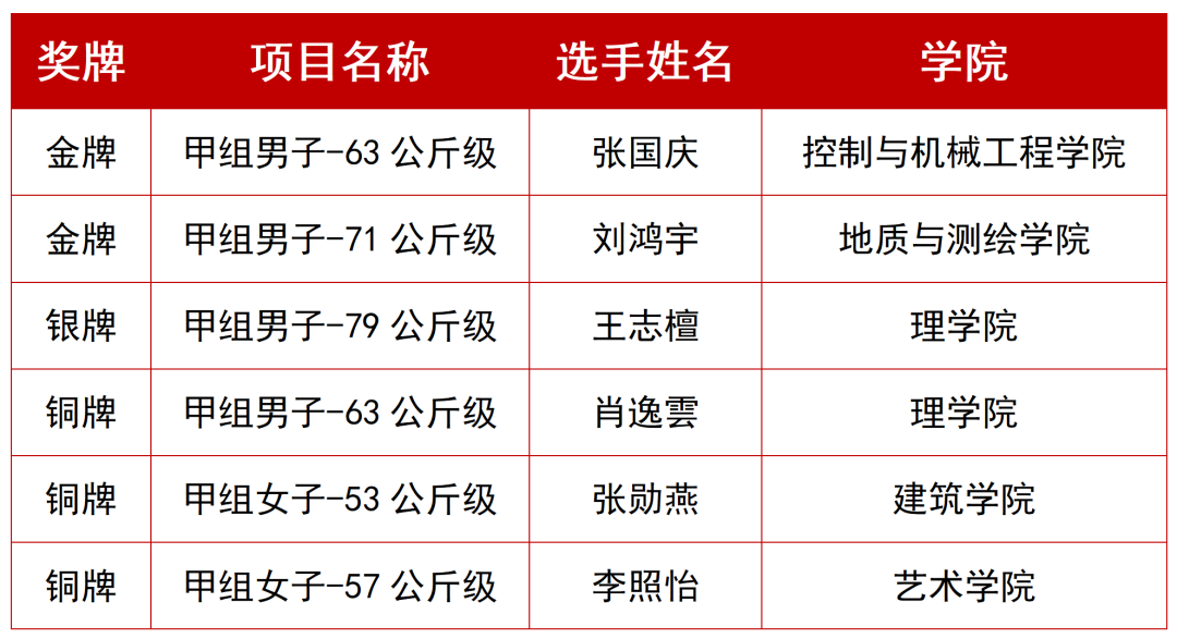 在本次比赛中,学校收获满满,女子团体获冠军,男子团体获亚军,团体混合型三等奖,男子单项获2金、1银、1铜,女子单项获3铜。