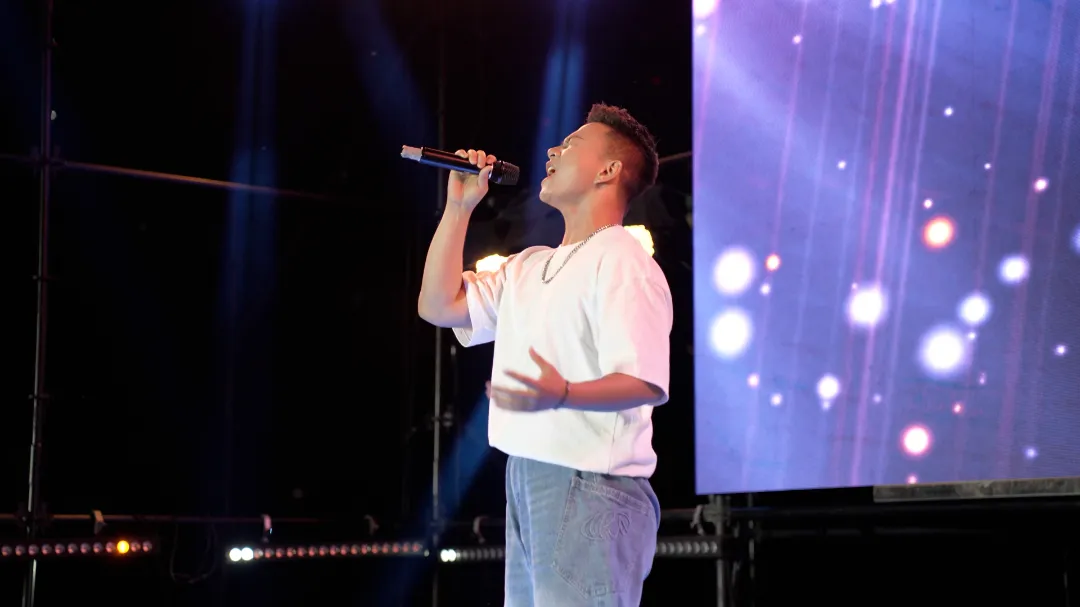 舞台上,灯光璀璨,现场回荡着天城大青年美妙动人的青春之歌,观众席,点点星光,欢呼呐喊中伴随歌声唱响未来。