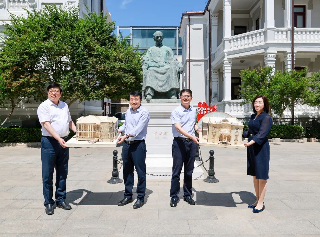 随后,史庆伟代表学校向两个场馆分别赠送了精美模型。该模型是威客电竞红色资源保护利用中心师生结合建筑测绘成果,分别制作的觉悟社合院和梁启超故居、饮冰室单体模型激光切割木工模型。