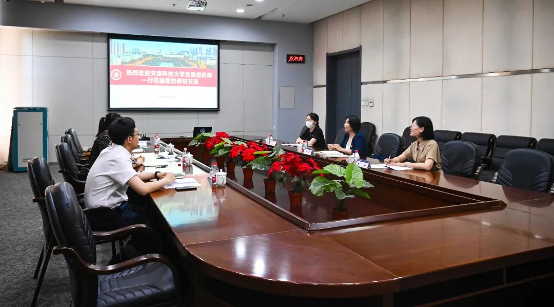 两校党务干部聚焦不同主题分为2组开展座谈交流。组工干部座谈交流会上,沙荔对天津科技大学党委组织部来校调研交流表示热烈欢迎并就近年来我校干部队伍建设的整体情况,特别是年轻干部选、育、管、用等四个方面的思考和经验做法做了详细介绍,此外,还就党员教育培训工作品牌——“两级七层次”党员发展全程递进式教育培养体系和干部教育培训工作品牌——“大培训体系”两项工作的开展情况进行了介绍。张春艳对学校的接待表示诚挚感谢并就天津科技大学干部队伍建设情况,特别是专职组织员队伍建设情况以及基层党建领航工程创建和作用发挥的思路理念和举措方法等进行了详细介绍。随后双方围绕近年组织工作面临的热点、难点问题进行了充分交流探讨,并表示未来将持续加强沟通交流,互学所长,共同提升组织工作能力,促进两校基层党建工作再上新水平。