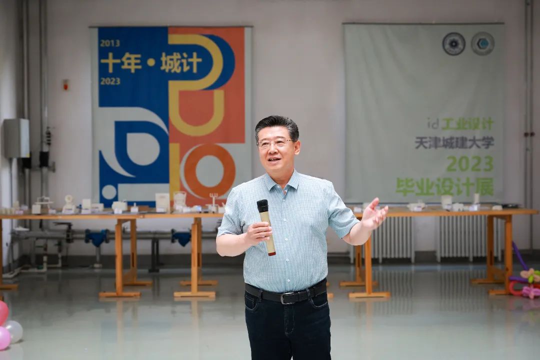 白海力在开幕式上致辞,向控制学院工业设计专业创办10年来取得的成绩表示热烈的祝贺,向一届又一届接续努力的同学们为学院和专业的发展贡献的聪明才智表示衷心的感谢。他表示,在威客电竞建校45周年暨更名大学10周年校庆日之际,学院举办“十年·城计”2023届工业设计毕业展,别有一番“情”味,为仲夏的建园增添了激扬的情绪、热烈的氛围和依依不舍的情愫,为2023届毕业生留下难忘的记忆。