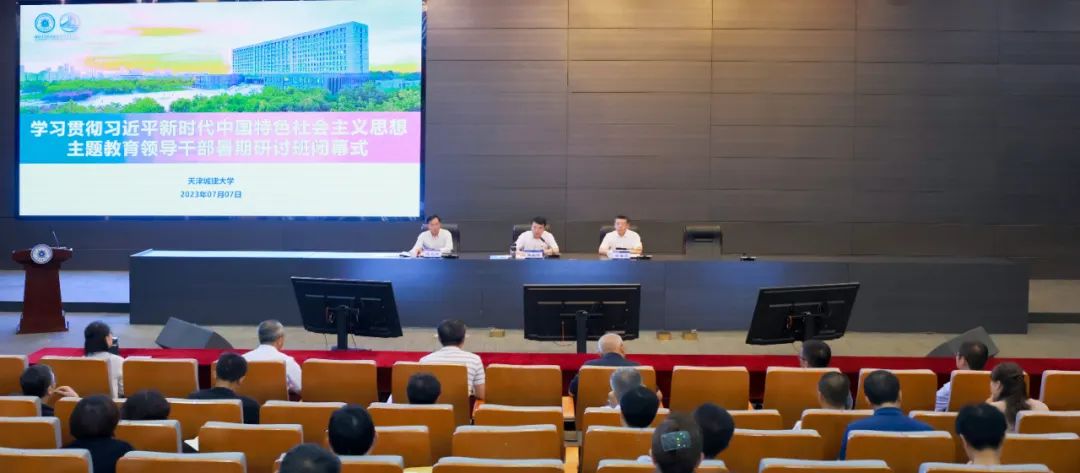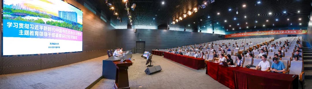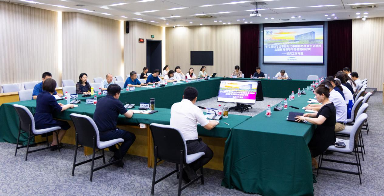 为全面贯彻落实党的二十大精神,深入开展学习贯彻习近平新时代中国特色社会主义思想主题教育,聚焦加快建设教育强国,充分发挥高校“以教育之力厚植人民幸福之本,以教育之强夯实国家富强之基”重要作用,按照“学思想、强党性、重实践、建新功”的总要求,积极落实市委、市政府“十项行动”尤其是“科教兴市人才强市行动”,围绕落实立德树人根本任务,坚持以学铸魂、以学增智、以学正风、以学促干,坚持理论学习下真功,调查研究出成果,在调研转化上做文章,学校举办为期3天的学习贯彻习近平新时代中国特色社会主义思想主题教育领导干部暑期研讨班,就党建工作、思政工作、学生工作、本科教育教学、研究生教育与学科建设、科学研究与社会服务、人才与师资队伍建设、智慧校园、校庆工作等方面深入开展专题研讨。