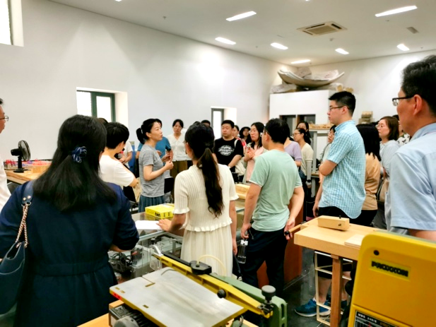 在革命丰碑展馆的红色劳动工坊,学员们对我校将红色资源保护利用融入第一课堂和第二课堂、将思政教育和劳动教育相融合的教学与实践情况进行了调研,对学生在建筑测绘、中国建筑史等课程中制作红色旧址木工实体模型的劳育实践环节产生了浓厚的兴趣,深入了解学生利用激光切割等手段设计、制作红色旧址复原模型的工艺原理和加工流程,学员代表还分组进行了沉浸式模型构件的安装体验,更加活跃了本次现场教学的气氛。通过参观学员们对进一步开展红色资源保护工作的迫切性和重要意义产生了巨大的共鸣,对探索红色资源的保护利用与高校科研与教学相结合的有效路径进行了深入思考。