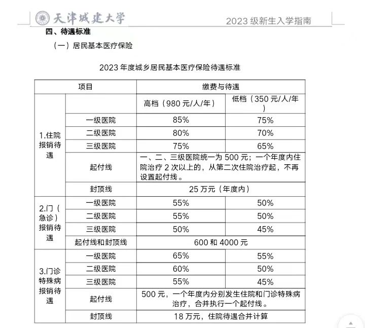 根据目前政策,按照低档个人缴费标准缴费,每人每年350元,享受高档缴费报销待遇。享受国家助学贷款的高校学生,参加2023年居民医保,按照90%的比例定额资助,其余10%费用由个人需缴纳,具体为每人每年35元。新生社保费用统一预收380元,后期根据天津市城乡居民基本医疗保险最新缴费标准缴纳社保费用。