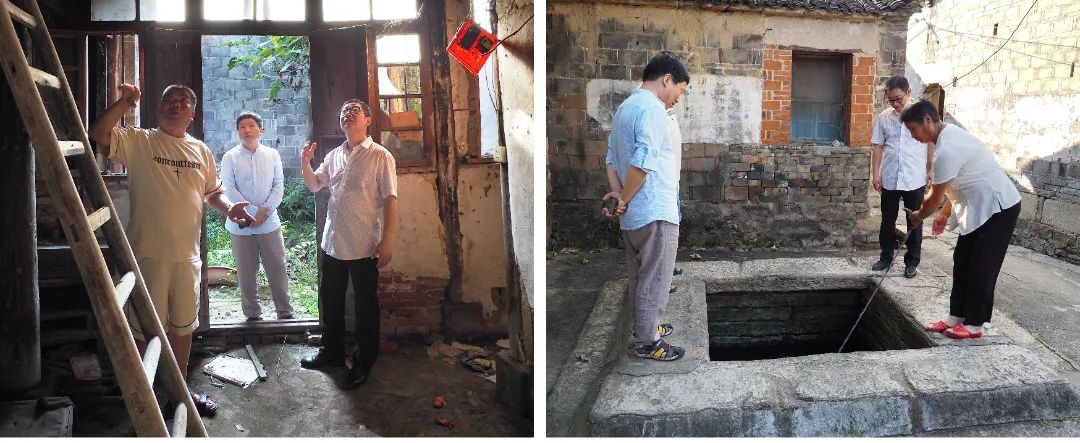 当日下午,调研团在李险峰教授和熊畈村党支部书记、村委会主任熊红芳的陪同下入村调研,考察了“萱荣瑞映”古楼、“九重屋”等文保的保护情况,参观了“乡村振兴基金”项目资助的民宿改建项目施工现场,并对熊畈古井、古排水系统、河滩柳林景观等当地特色自然与人文资源进行实地走访,为我校师生后续深入熊畈开展专业教学、科研合作工作积累思路。