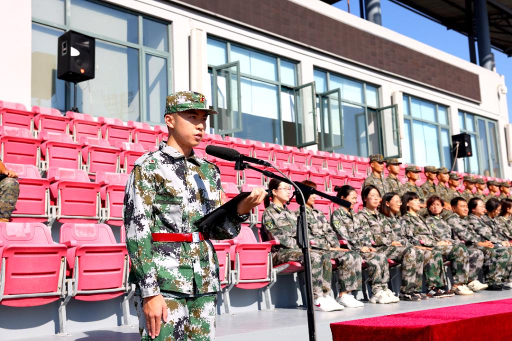 经济与管理学院2023级管科8班王天奕同学作为参训学员代表做出承诺,表示全体参训学生将认真学习国防知识,增强国防意识,提高国防素养,并在军训过程中互相团结,互相帮助,服从命令,听从指挥,以军人的标准严格要求自己,始终保持饱满的情绪和高昂的士气完成各项训练任务。
