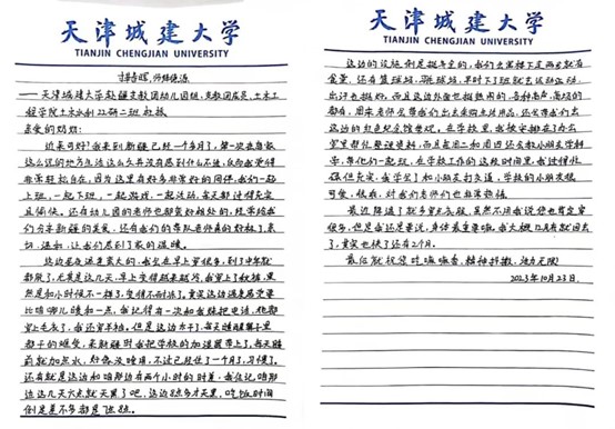 来到新疆已满月余,全体“小老师们”与家人进行了一次名为“思念”的视频,他们又将想对家人说却一直不曾说出口的心里话写成一封封家书,借此遥寄相思与祝福。