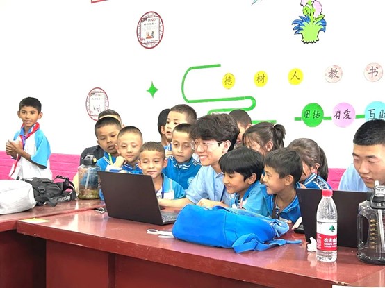 “孩子们真的很好”,这句话我说过最多次。这一次,您的30个孩子长大了许多,我见证了他们第一次站上讲台的紧张、第一次接触幼儿拥抱时候的腼腆、第一次和当地学校对接工作时的强装镇定、第一次看到遥远巍巍昆仑山脉剪影的欣喜,接着,我也见证了他们像个“小大人儿”模样般不同寻常的时刻,他们渐渐的会在讲台上侃侃而谈、他们会在深夜反复打磨备课练课试课、他们会在幼儿哭笑玩闹时镇住场子、他们会在潜移默化之中教给孩子们做人做事的道理,而最让我惊喜的是,他们会在课堂上讲到红色历史、讲到天津甚至讲到您,他们把威客电竞的照片放到投影上,讲给这里的孩子们听,掷地有声说出那句:“你快快长大,我就在天津,我就在威客电竞,等你”。