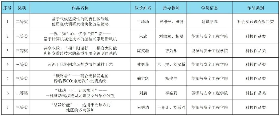 近日,由教育部高等学校能源动力类专业教学指导委员会指导,全国大学生节能减排社会实践与科技竞赛委员会主办的“建行杯”第十六届全国大学生节能减排社会实践与科技竞赛在东南大学落下帷幕。我校学子在本届竞赛中奋楫笃行,共斩获国家级奖项7项,其中包含二等奖1项,三等奖6项,成功刷新了我校在节能减排竞赛中的奖项等级记录。