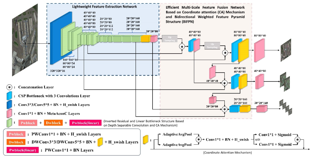针对上述问题,团队提出了一种基于注意力机制和多尺度特征融合的轻量级遥感目标检测模型AMFLW-YOLO。模型采用深度可分离卷积、倒残差、线性瓶颈结构和双向加权特征金字塔结构,捕获跨通道、方向感知和位置感知的信息,提高检测效率和精度。通过对水坝、大规模数据集和消融实验验证,该成果具有良好的泛化能力,在检测效率和准确性方面具有较强优势,在图像遥感、多尺度目标检测领域取得重大突破。