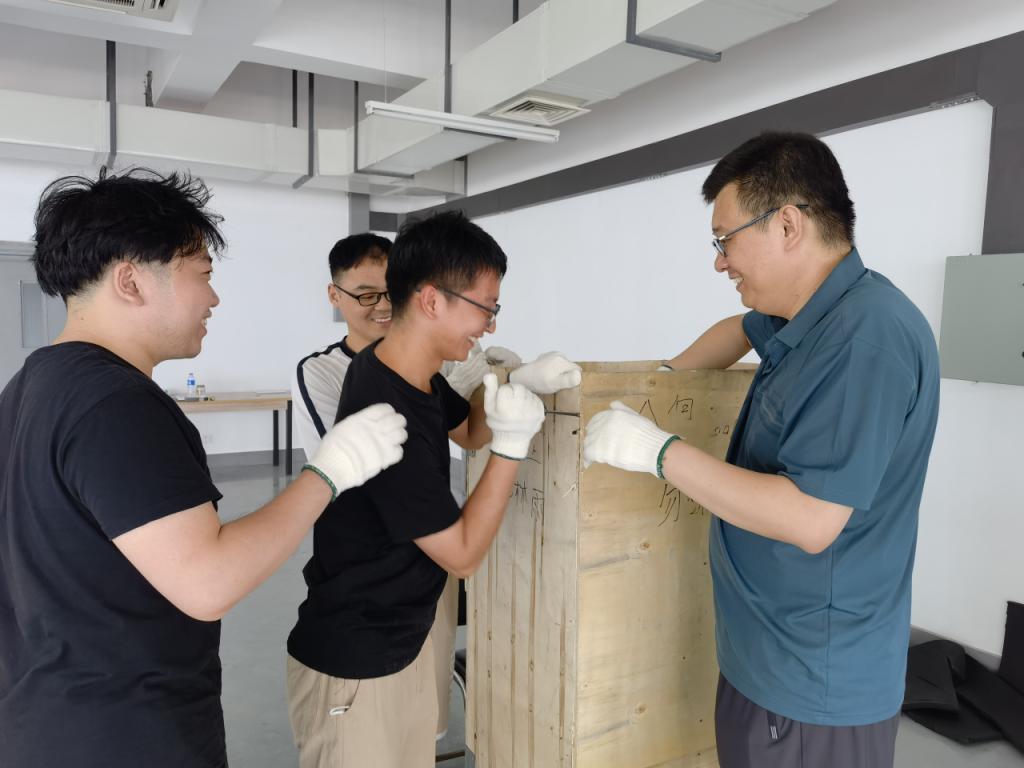 杨斌教授与团队成员共同搭建实验台