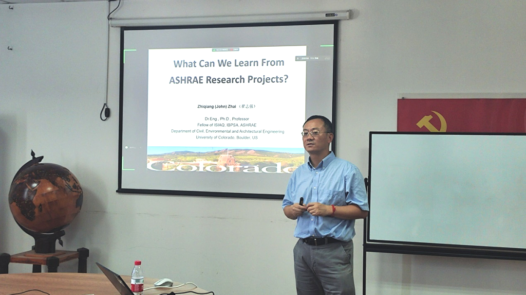 通过研讨会的形式,团队与其他高校开展深层次的科研交流,杨斌教授更是其中不可或缺的重要纽带。2023年2月,杨斌教授主持并参加“北极建筑研究国际研讨会”。会上,来自瑞典于默奥大学、挪威北极大学、芬兰瓦萨大学、丹麦技术大学、加拿大康考迪亚大学、青海民族大学的九位专家作主旨报告。报告主要围绕北极地区可持续建筑环境评估、节能住宅、智慧城市、混合可再生能源、建筑弹性建模、建筑节能改造、室内外热舒适等主题,详细探讨了极地建筑节能相关问题,参会人员进行了热烈交流互动。同年7月,美国科罗拉多大学翟志强教授来我院开展了关于“What can we learn from ASHRAE research projects?”的学术交流。并参观了能源与安全工程学院的洁净厂房、蒸发冷却、个性化通风等实验室,走访了我校工程实训中心,了解我校在室内空气品质、太阳能建筑一体化应用等方面的科研方向,为进一步深入合作寻求契机。此外,香港理工大学杨洪兴教授,新加坡国立大学严柯教授更是先后受杨斌教授邀约,来我校开展学术研讨,并表示后期应进一步加强交流合作。