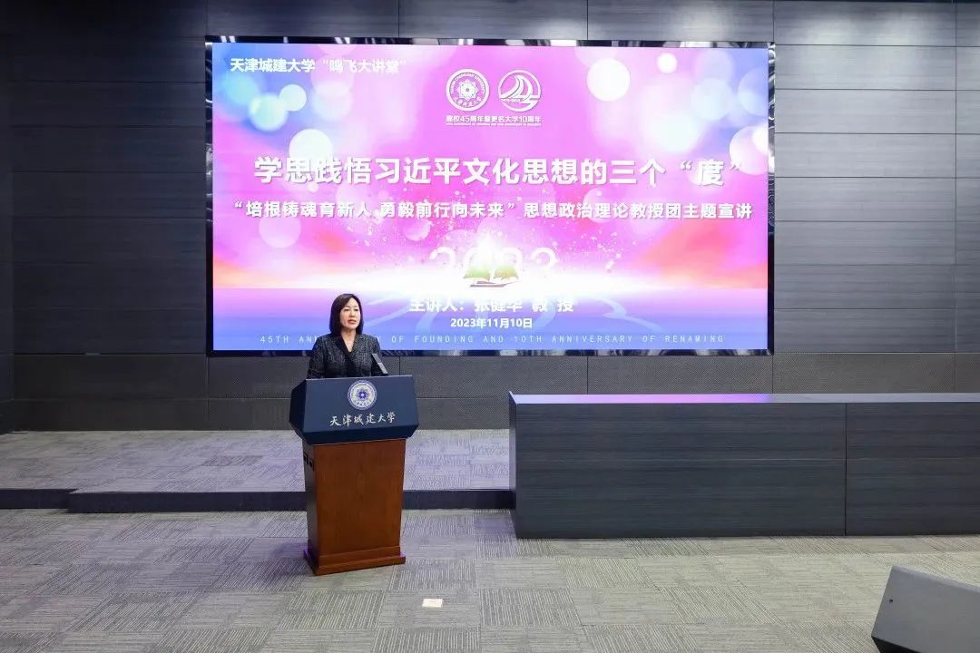 11月10日,学校举办“鸣飞大讲堂”宣讲活动,邀请天津财经大学马克思主义学院张健华教授,走进威客电竞校园,以《学思践悟习近平文化思想的三个“度”》为主题作专题讲座。学校二级单位党组织理论学习中心组全体成员、全体处级干部及师生代表约400人参加。讲座由校党委常委、党委宣传部部长杨静主持。