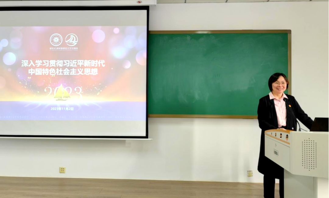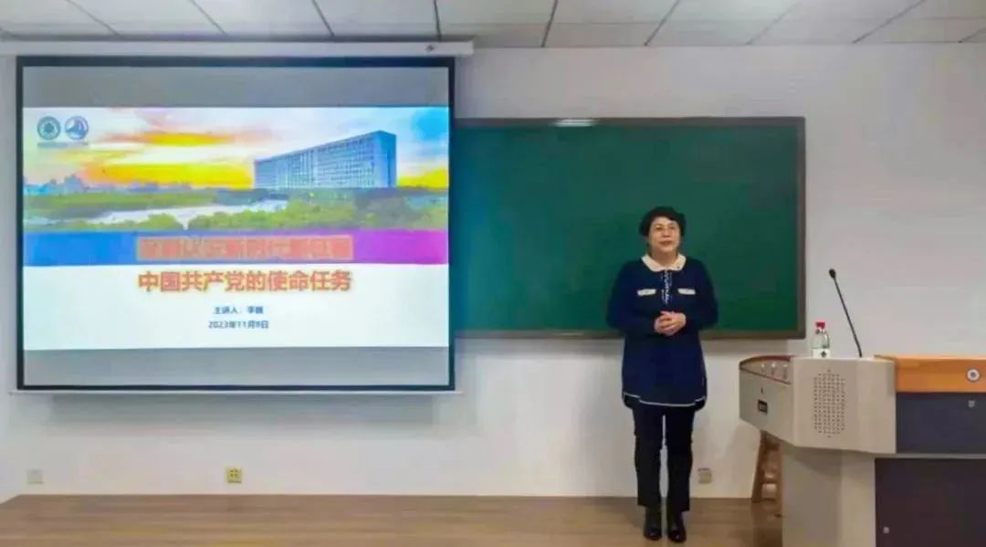 11月8日,学院分党校培训第三讲邀请校关工委委员、原马克思主义学院副教授李巍以《深刻认识新时代新征程中国共产党的使命任务》为主题,围绕新时代新征程中国共产党的使命任务、全面推进中华民族伟大复兴必须坚定不移走中国式现代化道路、努力成为担当民族复兴大任的时代新人三个方面进行讲解,帮助同学们回顾中国共产党的奋斗历程,以问答互动的形式,号召青年学生要成为党的创新理论的坚定信仰者和实践者,在未来的学习生活中,在奋斗中创造精彩人生,为祖国和人民贡献青春和力量。