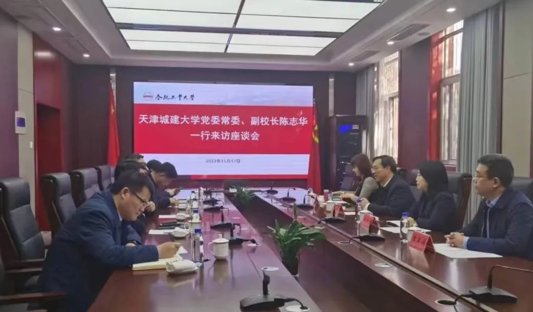 陈志华对合肥工业大学的热情接待表示由衷的感谢,并介绍了我校的基本情况。他表示,合肥工业大学具有厚重的历史底蕴,各项事业取得长足发展,值得借鉴学习。希望以本次交流为契机,学习兄弟高校先进教育理念和管理经验,进一步补齐短板弱项、建立沟通机制、搭建合作平台,更好实现共赢发展,为服务国家战略、城建行业和地方经济社会发展提供强劲动能。会上,我校团委负责人介绍了“天开杯”创聚津门全国大学生智能科技创新创业挑战赛赛事安排。陈志华代表我校邀请合肥工业大学优质创新创业项目来津参赛,进一步培育大学生创新创业策源力量。