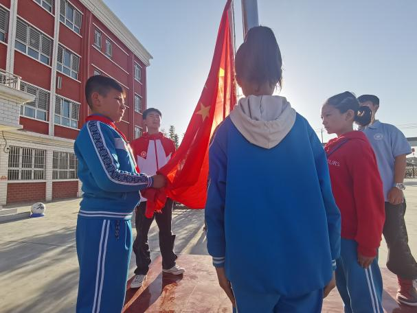 支教团为于田县第二小学筹建了一支高素质的国旗护卫队,通过前期宣传与招募,选拔了一批符合标准和要求的队员,并由支教团中具有国旗护卫队、服兵役经历的成员们进行专业训练,通过更加规范的仪式弘扬爱国主义精神,培养学生的民族自豪感和集体荣誉感,截至目前,国旗护卫队承担每周升旗仪式,并开始服务于日常训练和重大爱国主义教育活动。