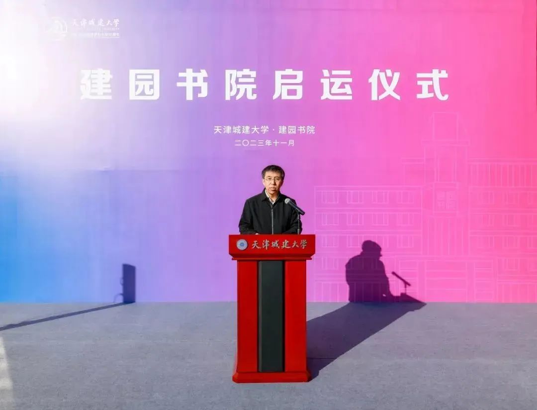 白海力主持仪式并致辞。白海力代表学校对各位领导、师生参加启运仪式表示感谢,就学校创新思维,全面推进构建“5I空间·融系统”的“城大共识”、“城大行动”、“城大实践”三部曲进行了诠释;介绍了建园书院作为“品牌强校” 行动载体,聚焦研究生群体开展人才培养和教育改革,提升学生学术水平和科研创新能力,形成了创新探索产教融合、科教融汇路径的良好氛围与生动实践。