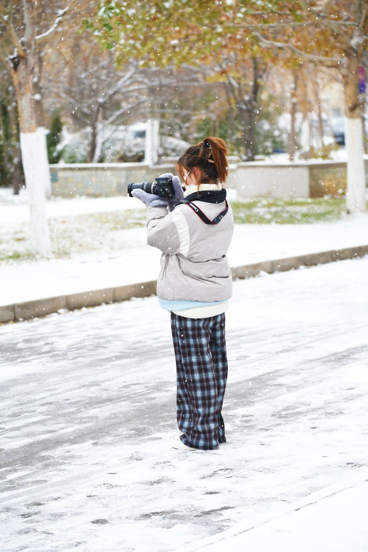 拿起镜头按下快门记录初雪的温柔