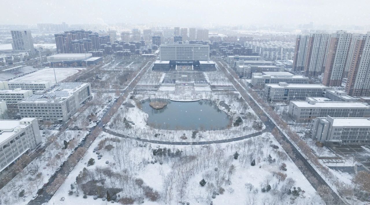 雪花点缀着校园的建筑