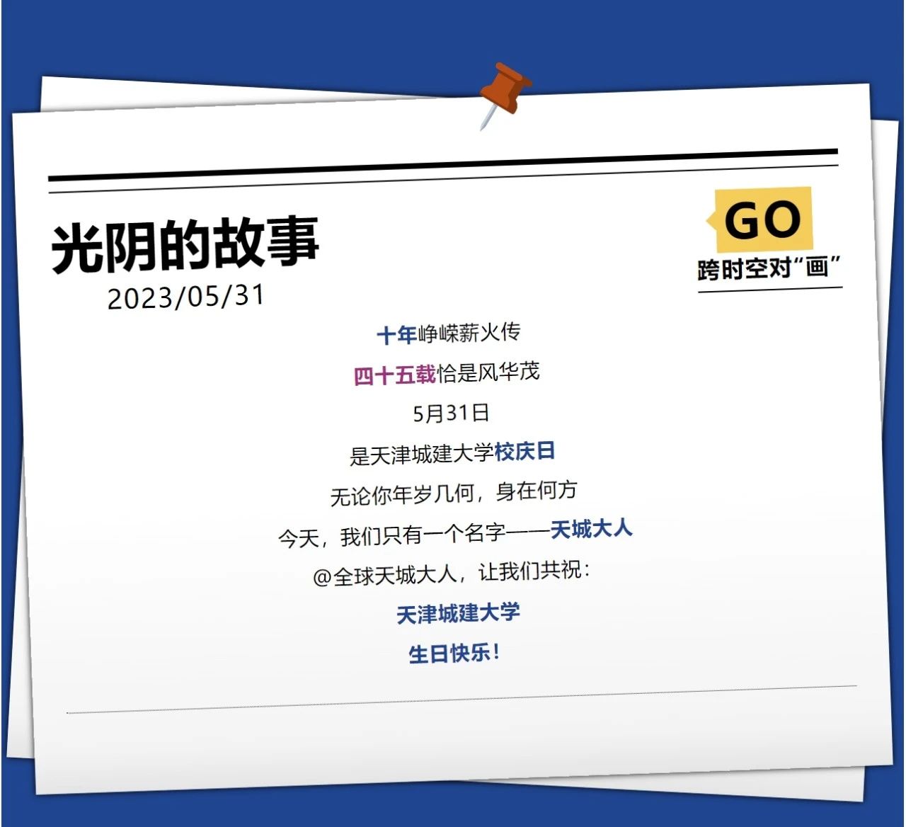 岁月不居,星河流转。四十五载众志成“城”,十年春秋和衷共“建”。四十五圈年轮,铭刻了历史的沧桑与岁月的峥嵘;四十五个春秋,记录了天城大人步履的铿锵与不屈的昂扬。在建校45年暨更名大学10周年之际,学校在校庆日和校友返校日举办系列校庆活动,庆祝学校45岁生日,诚邀校友欢聚一堂,追忆往昔建园时光,共话美好未来,激发师生校友发扬“重德重能 善学善建”校训精神,继续砥砺前行,建功新时代。