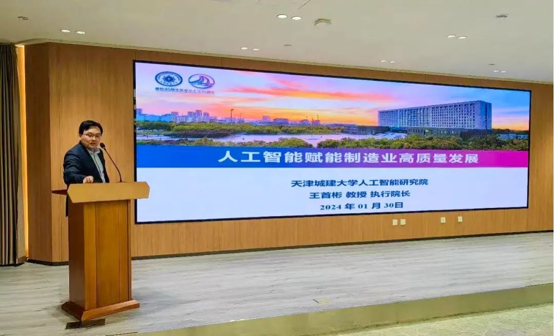 会议期间,各企业代表、专家学者围绕智能制造、机器人、自动化生产线、数控机床等热点领域进行了技术分享和交流。我校人工智能研究院执行院长王首彬教授以“人工智能赋能制造业高质量发展”为题作主旨演讲。王首彬表示,高端装备制造业是工业现代化的重要基石和科技创新的重要领域,人工智能技术作为推动高端装备制造业创新发展、智能制造产业优化升级的驱动力量,对于赋能产业发展具有重要意义,围绕“服务‘一带一路'工程建设项目”、“开展智能测控仪器装备关键技术研究”、“提供智能化城市建设解决方案”等科技项目开展情况与参会嘉宾进行深入探讨和交流。