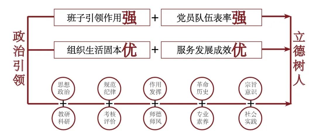 支部以党建为引领,结合学院专业特色,围绕教研科研、考核评价、师德师风、专业素养、社会实践等五个方面开展融合工作,在课程建设、教学改革、专业竞赛等工作中锻炼青年党员,发挥支部的战斗堡垒作用和党员先锋模范作用。