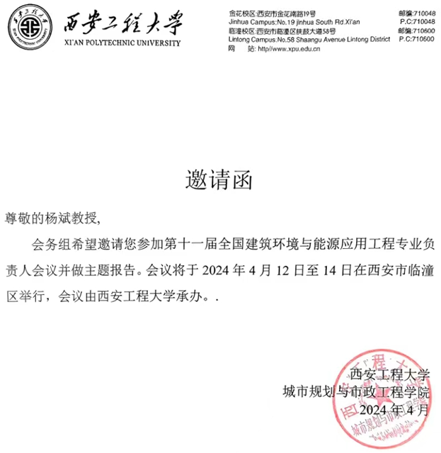 近日,第十一届全国建筑环境与能源应用工程专业负责人会议在西安市临潼区举行,会议由西安工程大学主办,我校能源与安全工程学院院长杨斌教授应邀参加会议并做主题报告。